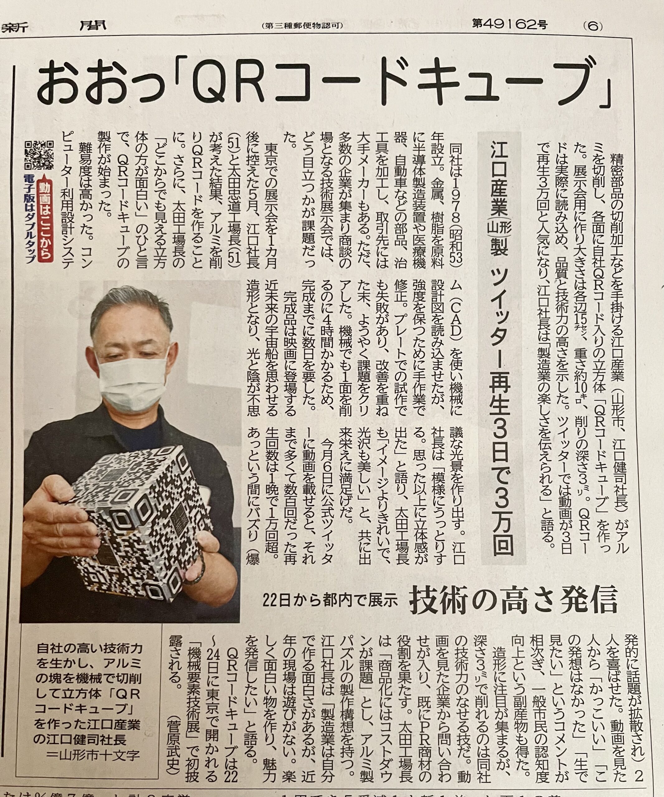 6/17に山形新聞さまから取材を受け、6/19日朝刊に掲載されました!